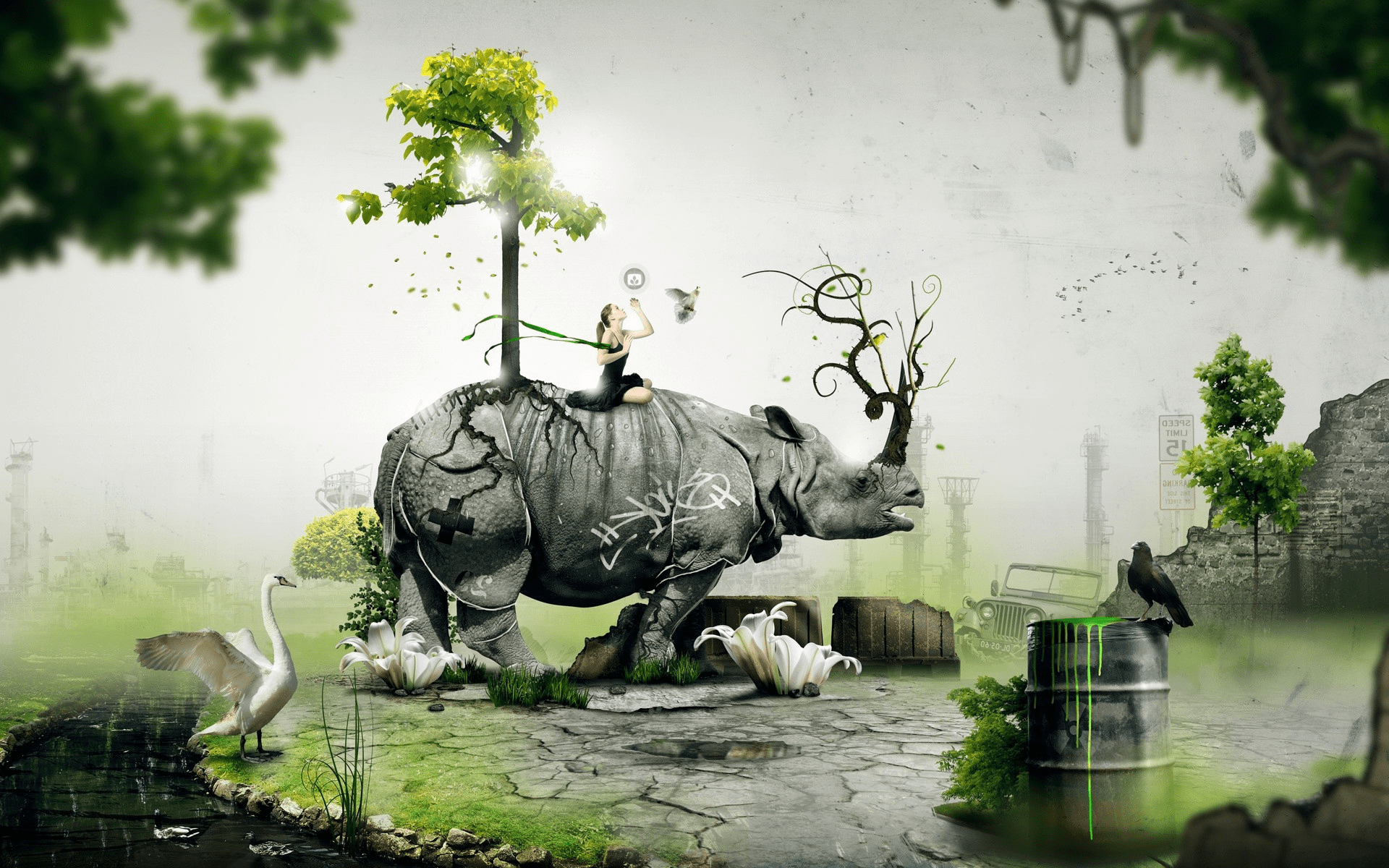 This oblique historical moment is depicted in ‘The Killer’ and ‘Rhinoceros’.